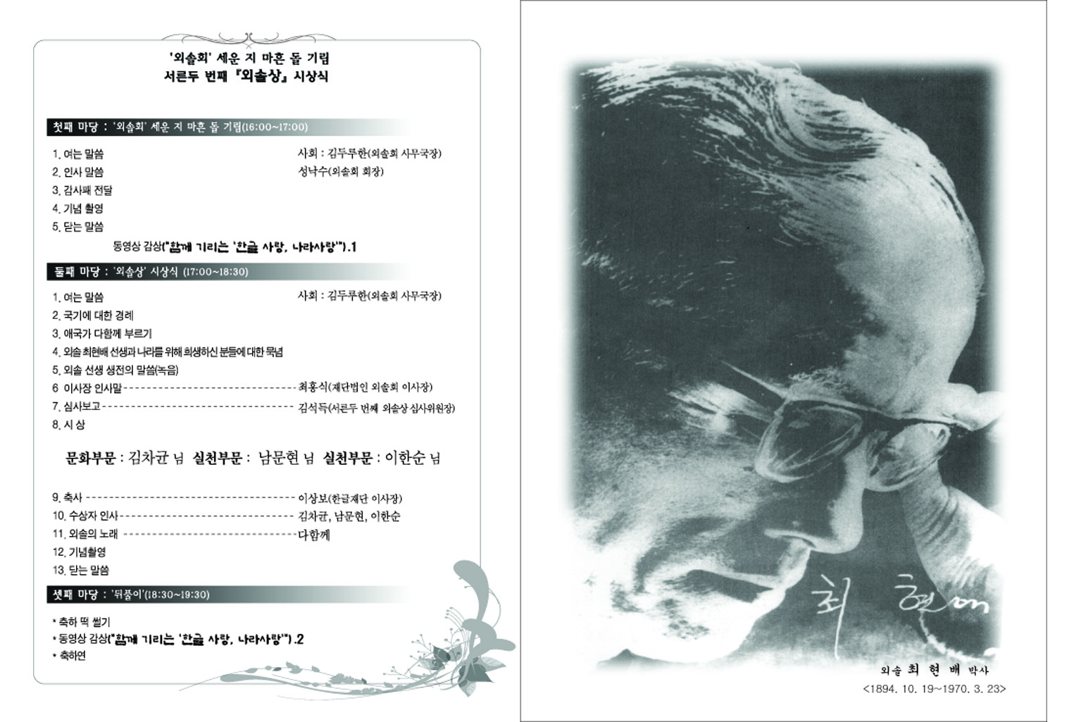 서른두 번째 외솔상 시상식 차례