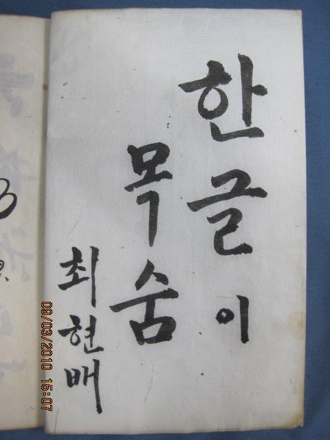 이번에 한민족아리랑연합회 김연갑 이사가 공개하기로 한 ‘금서집’은 1932년부터 1936년까지 5년 동안 한 음식점 주인이 받은 80 여 쪽 자리 귀한 문집인데 그 가운데 거의 모두 한문이고, 한글로 쓴 글이 4점, 영문이 2점, 일본글이 2점인데 그 가운데 하나다. ‘한글이 목숨’이라는 내용도 좋지만 글씨도 힘 있고 멋있게 잘 쓴 글씨로서 매우 뜻이 깊은 한글역사 자료다. 김연갑님은 이 문서를 10년 전 인사동 헌책방에서 여기 저기 옮겨 다닐 때 우연히 그 속에서 외솔 붓글씨를 보고 구입했다고 한다. 그리고 이번에 외솔 기념관 개관을 계기로 많은 사람들이 보고 외솔의 한글사랑정신을 느끼고 본받으라고 공개하기로 한 것이다.